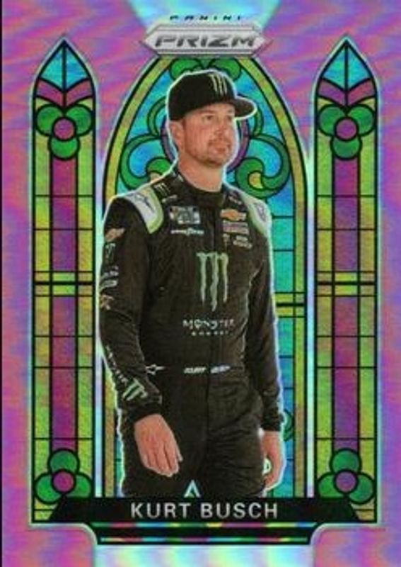 The Kurt Busch 2020 Prizm NASCAR #66 Pink /50 card is 1 of 95 Kurt Busch's card variations in the 2020 Prizm NASCAR set being tracked by Sports Card Investor, including #82 Base, #30 Base, #66 Base, #82 Blue, and #66 Blue.