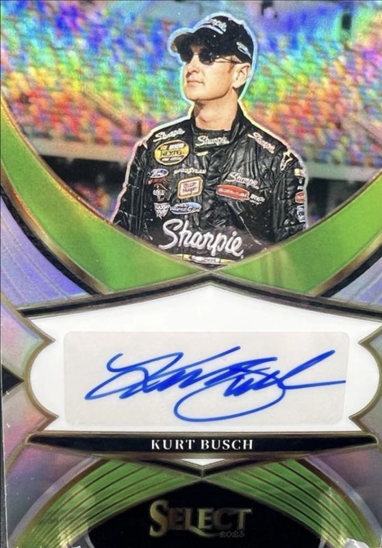 The Kurt Busch 2025 Select NASCAR #LS-KUB Legendary Signatures card is 1 of 79 Kurt Busch's card variations in the 2025 Select NASCAR set being tracked by Sports Card Investor, including Base Pit Road, Base Pit Road Orange Flash, Base Pit Road Orange Ice, Base Pit Road Silver, and Base Pit Road Tri-Color.