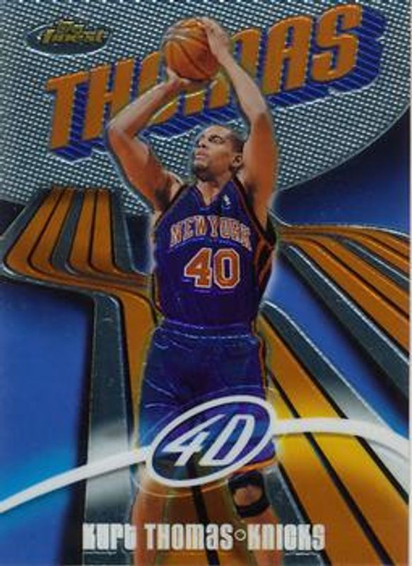 The Kurt Thomas 2003 Topps Finest #40 Base /999 card is 1 of 8 Kurt Thomas' card variations in the 2003 Topps Finest set being tracked by Sports Card Investor, including Refractor /250, Gold Refractor /25, Printing Plate Black /1, Printing Plate Cyan /1, and Printing Plate Magenta /1.