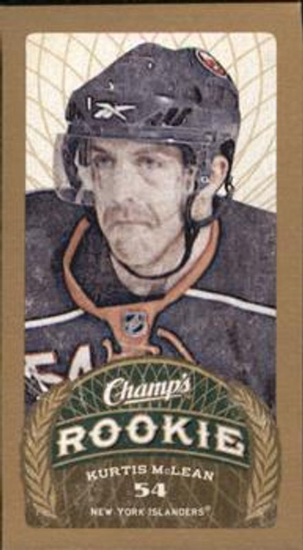 The Kurtis McLean 2009 Upper Deck Champ's #149 Base Rookie card is 1 of 5 Kurtis McLean's card variations in the 2009 Upper Deck Champ's set being tracked by Sports Card Investor, including Mini Blue Backs, Mini Green Backs, Mini Parkhurst Backs, and Mini Red Backs.