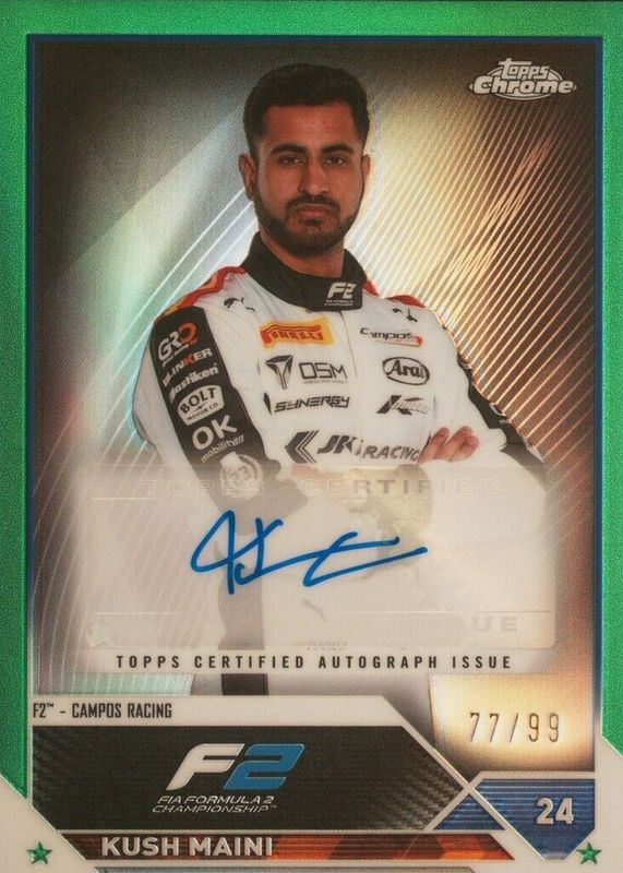 2023 Topps Chrome Formula 1 Kush Maini GREEN Auto #83/99 Formula 2 Campos Racing