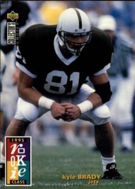 The Kyle Brady 1995 Upper Deck Collector's Choice #9 Base Rookie card is 1 of 3 Kyle Brady's card variations in the 1995 Upper Deck Collector's Choice set being tracked by Sports Card Investor, including Platinum Player's Club, and Player's Club.