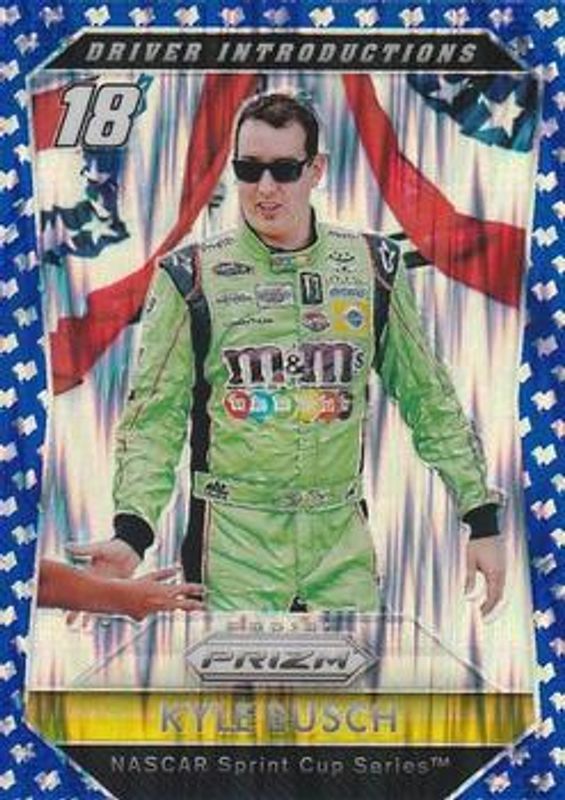 The Kyle Busch 2016 Prizm NASCAR #76 Blue Flag /99 card is 1 of 101 Kyle Busch's card variations in the 2016 Prizm NASCAR set being tracked by Sports Card Investor, including #76 Base, #66 Base, #59 Base, #18 Base, and #18 Camo.