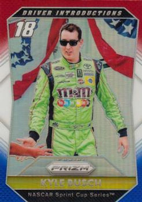 The Kyle Busch 2016 Prizm NASCAR #76 Red White Blue card is 1 of 101 Kyle Busch's card variations in the 2016 Prizm NASCAR set being tracked by Sports Card Investor, including #76 Base, #66 Base, #59 Base, #18 Base, and #18 Camo.