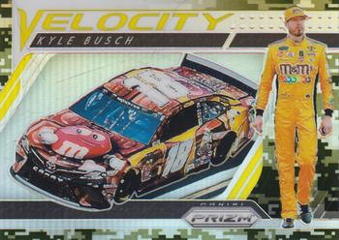 The Kyle Busch 2019 Prizm NASCAR #76 Camo card is 1 of 120 Kyle Busch's card variations in the 2019 Prizm NASCAR set being tracked by Sports Card Investor, including #76 Base, #67 Base, #83 Base, #15a Base, and #15b Base.