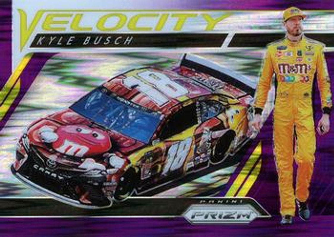 The Kyle Busch 2019 Prizm NASCAR #76 Purple Flash (Hobby) card is 1 of 120 Kyle Busch's card variations in the 2019 Prizm NASCAR set being tracked by Sports Card Investor, including #76 Base, #67 Base, #83 Base, #15a Base, and #15b Base.