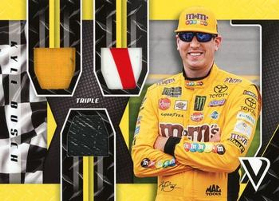 The Kyle Busch 2019 Victory Lane NASCAR #TS-KY Triple Swatches card is 1 of 123 Kyle Busch's card variations in the 2019 Victory Lane NASCAR set being tracked by Sports Card Investor, including #98 Base, #15 Base, #52 Base, #59 Base, and #64 Base.