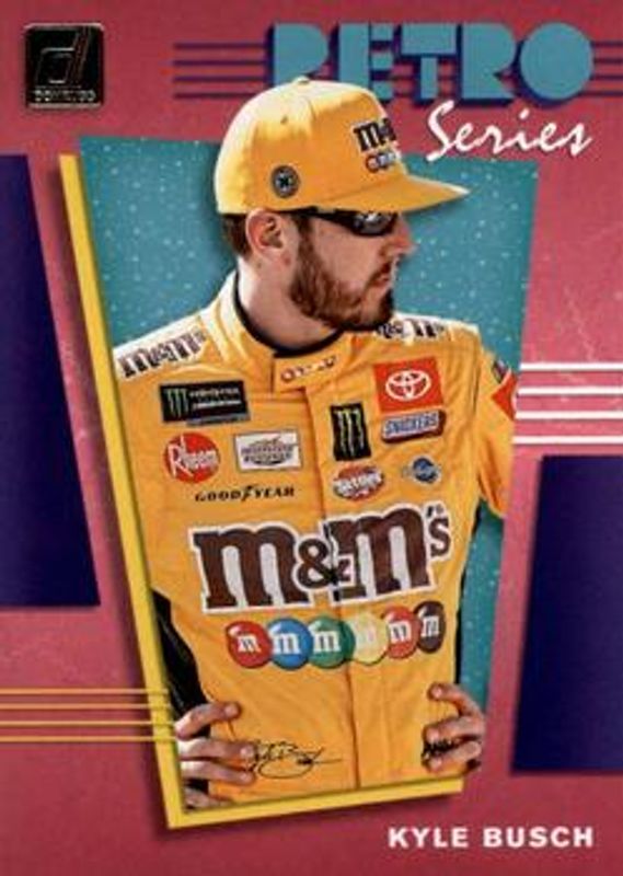 The Kyle Busch 2020 Donruss NASCAR #R10 Retro Series card is 1 of 148 Kyle Busch's card variations in the 2020 Donruss NASCAR set being tracked by Sports Card Investor, including #182 Base, #102 Base, #42 Base, #5 Base, and #196 Base.