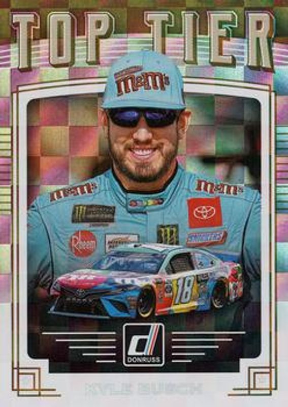 The Kyle Busch 2020 Donruss NASCAR #TT-7 Top Tier Checkers card is 1 of 148 Kyle Busch's card variations in the 2020 Donruss NASCAR set being tracked by Sports Card Investor, including #182 Base, #102 Base, #42 Base, #5 Base, and #196 Base.