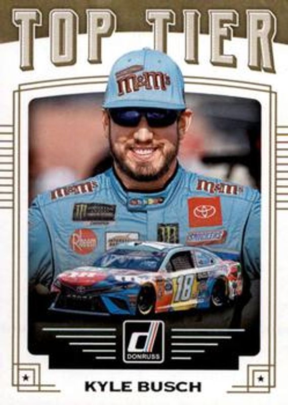 The Kyle Busch 2020 Donruss NASCAR #TT-7 Top Tier card is 1 of 148 Kyle Busch's card variations in the 2020 Donruss NASCAR set being tracked by Sports Card Investor, including #182 Base, #102 Base, #42 Base, #5 Base, and #196 Base.