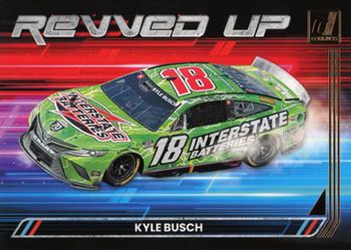 The Kyle Busch 2023 Donruss NASCAR #RU8 Revved Up Retail card is 1 of 166 Kyle Busch's card variations in the 2023 Donruss NASCAR set being tracked by Sports Card Investor, including #3 Base, #55 Base, #121 Base, #140 Base, and #3 Carolina Blue.