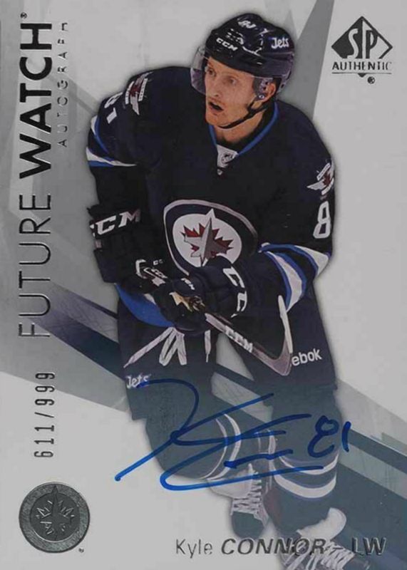 Kyle Connor's Hockey cards are available in at least 134 sets. Kyle Connor's biggest 7-day price movers are 2016 Upper Deck #212 Young Guns Base, 2016 SP Authentic #157 Future Watch Auto /999, and 2016 Upper Deck The Cup #112 Rookie Patch Auto (/249).