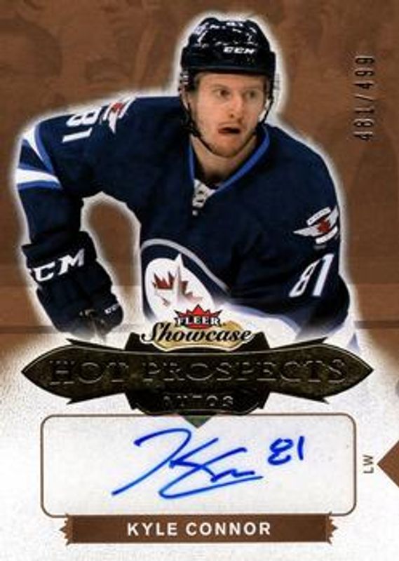 The Kyle Connor 2016 Fleer Showcase #161 Base /399 Rookie card is 1 of 22 Kyle Connor's card variations in the 2016 Fleer Showcase set being tracked by Sports Card Investor, including Hot Prospects Autographs Patch /135, Red Glow /25, Hot Prospects Autographs Patch White Hot /10, White Hot /5, and EX 2017.