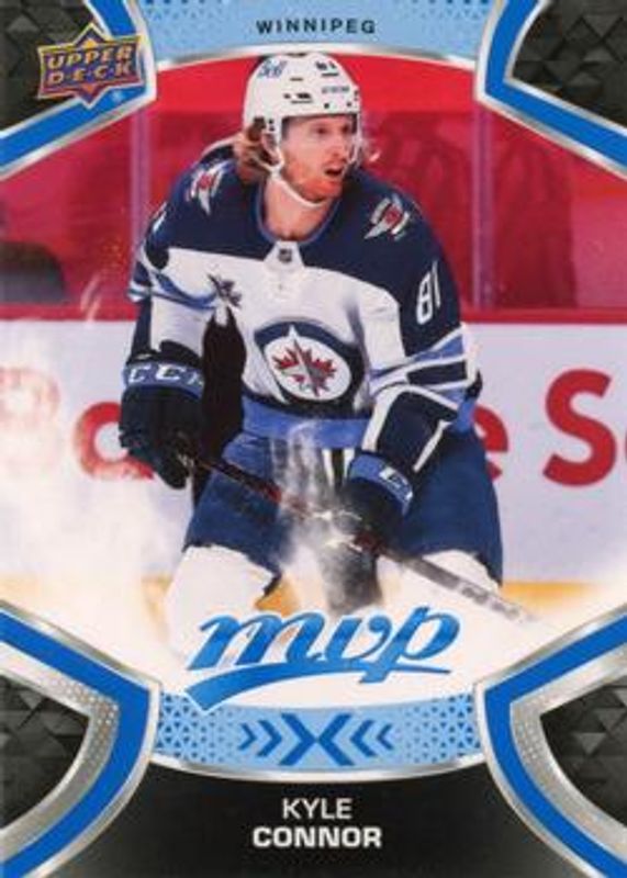 The Kyle Connor 2021 Upper Deck MVP #81 Blue card is 1 of 22 Kyle Connor's card variations in the 2021 Upper Deck MVP set being tracked by Sports Card Investor, including Base, Gold Script, Ice Battles, Silver Script, and Super Script /25.