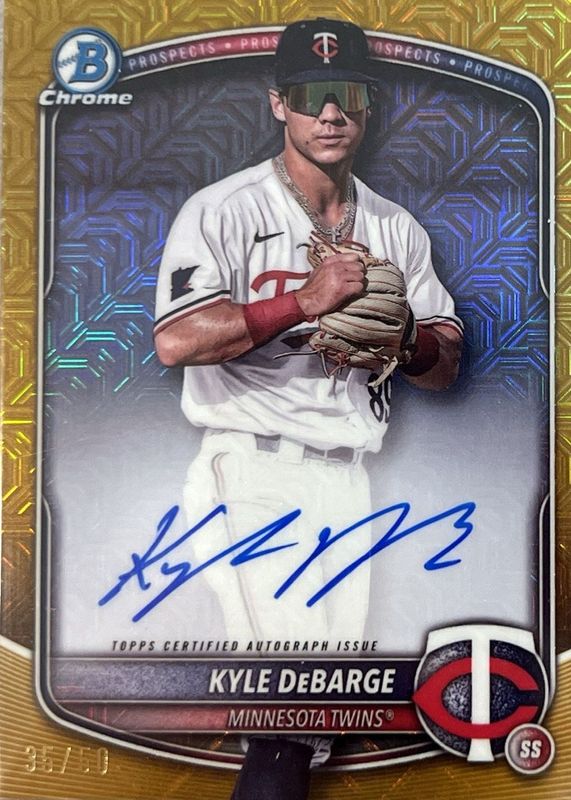 Best Prices Available For Sale of Kyle DeBarge 2025 Bowman Mega Box #BMA-KD Chrome Prospect Auto - Gold Refractor /50