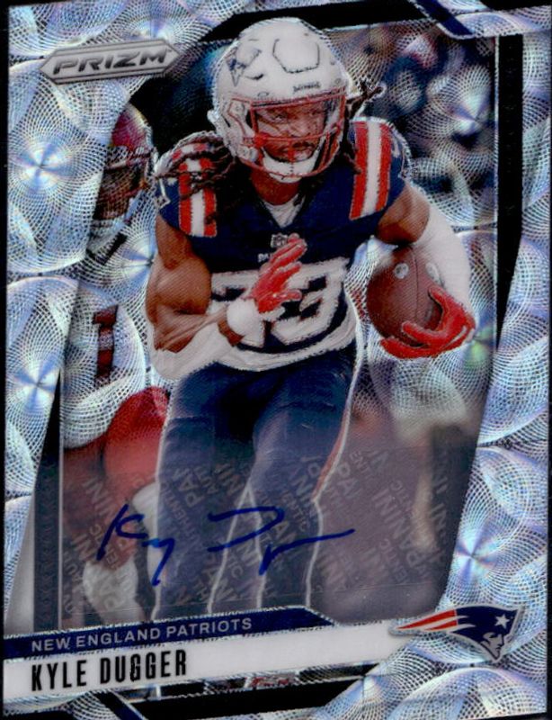 The Kyle Dugger 2024 Prizm #197 Base Autographs - Choice /100 card is 1 of 85 Kyle Dugger's card variations in the 2024 Prizm set being tracked by Sports Card Investor, including Base, Choice Blue Yellow Green, Choice Silver, Disco, and Green.
