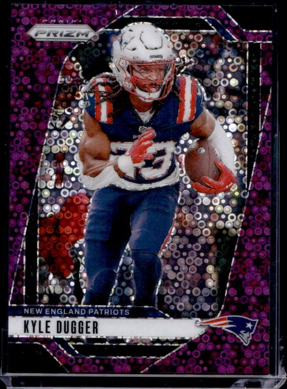 The Kyle Dugger 2024 Prizm #197 No Huddle Purple /49 card is 1 of 85 Kyle Dugger's card variations in the 2024 Prizm set being tracked by Sports Card Investor, including Base, Choice Blue Yellow Green, Choice Silver, Disco, and Green.