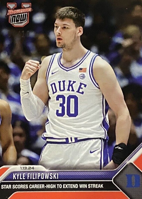 This card is 1 of 6 Kyle Filipowski's card variations in the 2023 Bowman U Now set being tracked by Sports Card Investor, including Base (Print Run: 301), Blue /49, Purple /25, Orange /5, and Gold /1.