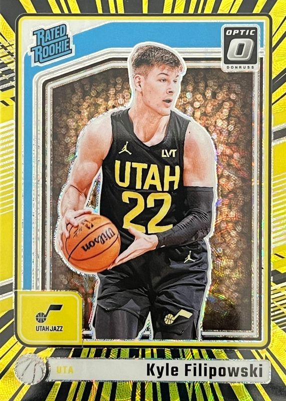 This card is 1 of 76 Kyle Filipowski's card variations in the 2024 Optic set being tracked by Sports Card Investor, including Base, Blue Velocity, Checkerboard, Choice, and Fast Break.