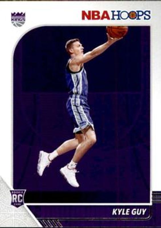 The Kyle Guy 2019 Hoops #238 Base Rookie card is 1 of 28 Kyle Guy's card variations in the 2019 Hoops set being tracked by Sports Card Investor, including Premium Box Set /199, Black Artist's Proof /1, Blue, Great SIGnificance, and Hot Signatures Rookies.