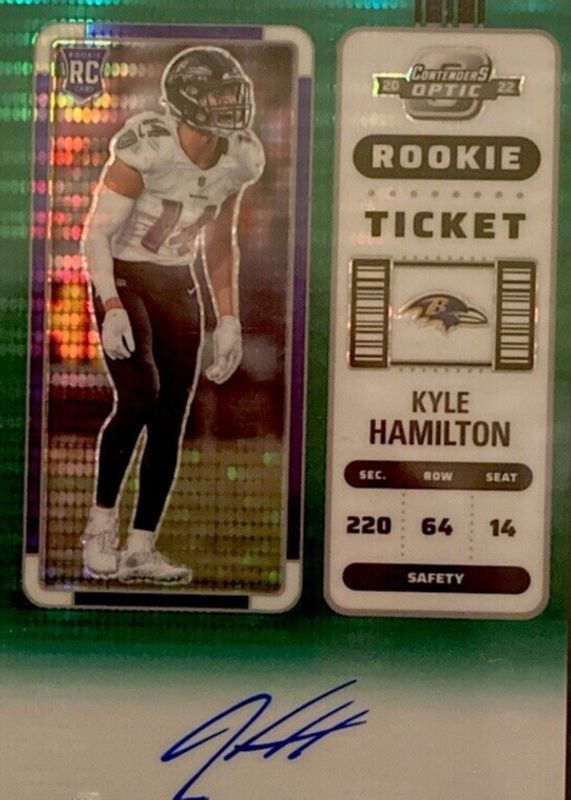 Kyle Hamilton 2022 Contenders Optic #128 Rookie Ticket Auto - Green Pulsar /30 RAW Price Guide