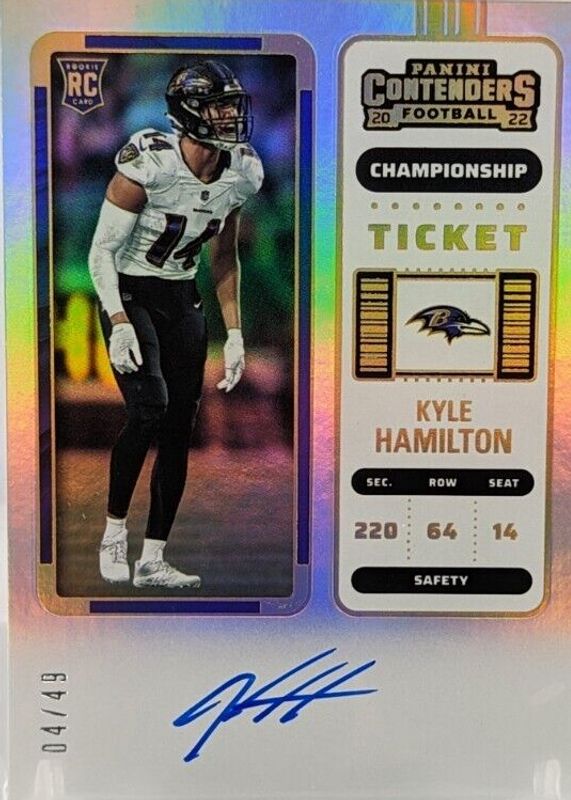 2022 Contenders Kyle Hamilton Championship Ticket Rookie Auto RC #07/49 Ravens