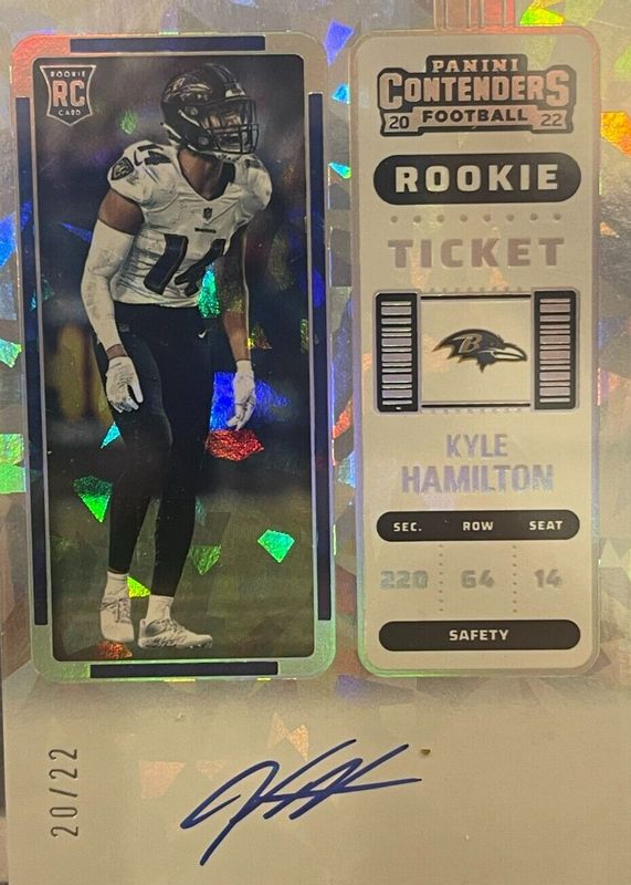 2022 Panini Contenders Kyle Hamilton Rookie Auto Cracked Ice /22