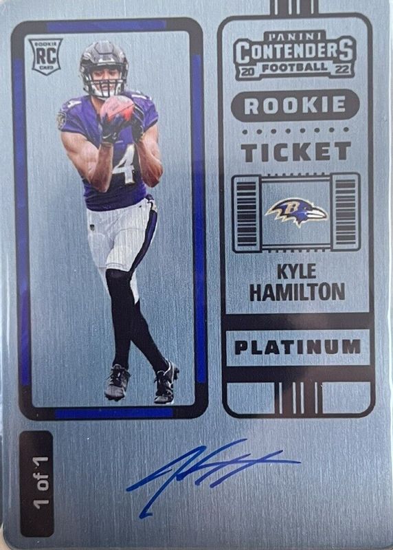 Kyle Hamilton 2022 Contenders #128 Rookie Ticket Auto - Platinum /1 RAW Price Guide