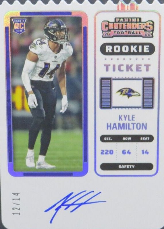 2022 PANINI CONTENDERS KYLE HAMILTON TICKET STUB AUTO RC /14 RAVENS ROOKIE