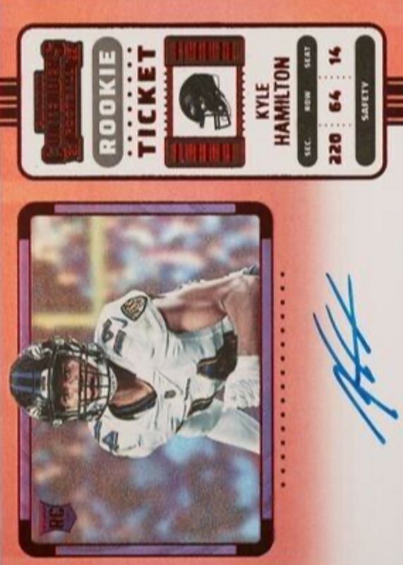 This card is 1 of 30 Kyle Hamilton's card variations in the 2022 Contenders set being tracked by Sports Card Investor, including Rookie Ticket Auto, Rookie Ticket Auto - Red Zone Ticket, Rookie Ticket Auto - Silver (/49), Rookie Ticket Auto - Ticket Stub (/14), and Rookie Ticket Auto - Wild Card.