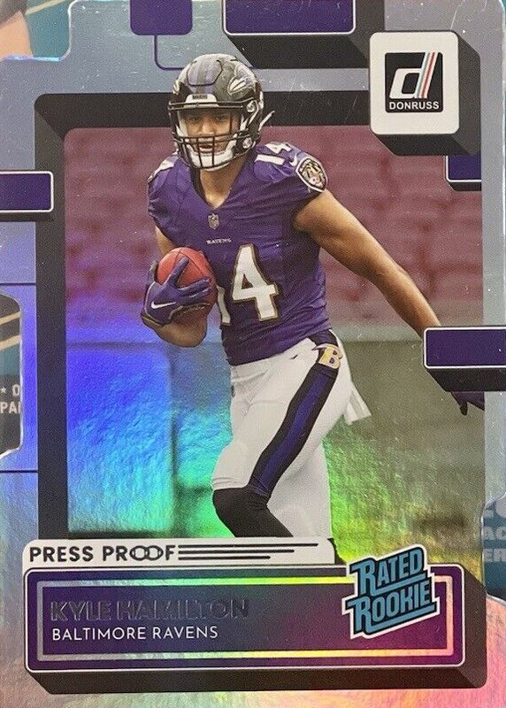 The Kyle Hamilton 2022 Donruss #338 Press Proof Silver Die-Cut /75 Rookie card in Raw condition has not changed in price in the last 30 days and was last sold for $16.00 .