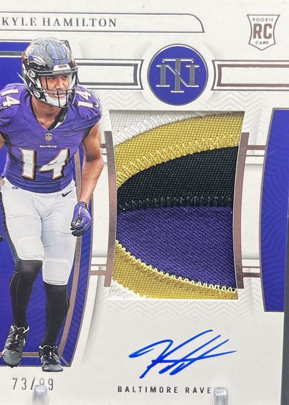 2022 National Treasures Kyle Hamilton Rookie Patch Auto #186 /99 A639 TEAM PATCH
