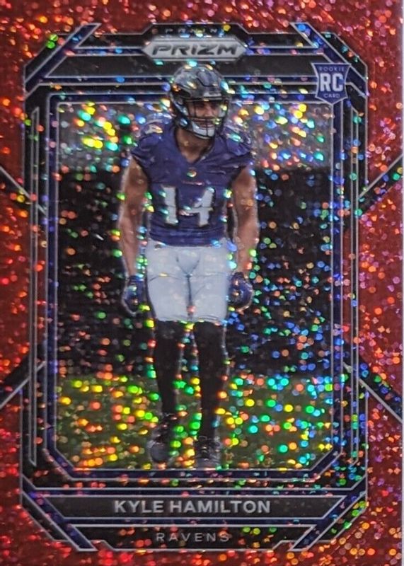 The Kyle Hamilton 2022 Prizm #342 Red Sparkle /(SSP) Rookie card in Raw condition has not changed in price in the last 30 days and was last sold for $7.50 .