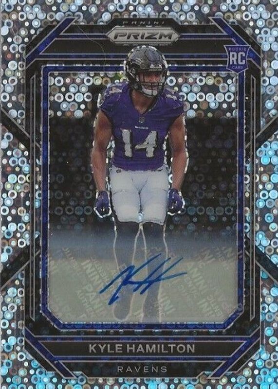 The Kyle Hamilton 2022 Prizm #342 Rookie Autographs - No Huddle card in Raw condition has moved up $6.01 (+12.0%) in the last 30 days and was last sold for $56.00 .