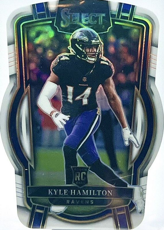 This card is 1 of 67 Kyle Hamilton's card variations in the 2022 Select set being tracked by Sports Card Investor, including Club Level, Suite Level, Club Level Black & Green Die-Cut, Club Level Black & Red Die-Cut, and Club Level Disco.