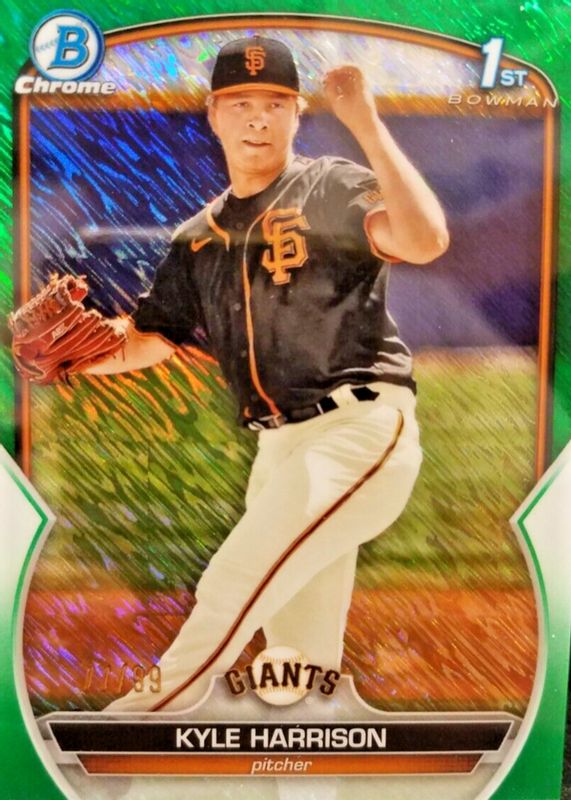 Kyle Harrison 2023 Bowman Chrome Prosp Green Shimmer #BCP-93 Giants RC /99 65