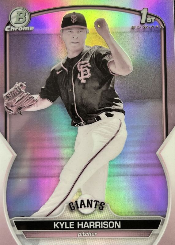 The Kyle Harrison 2023 Bowman #BCP-93 Chrome Prospects - Pearl Refractor (1st) card in Raw condition has not changed in price in the last 30 days and was last sold for $28.76 .
