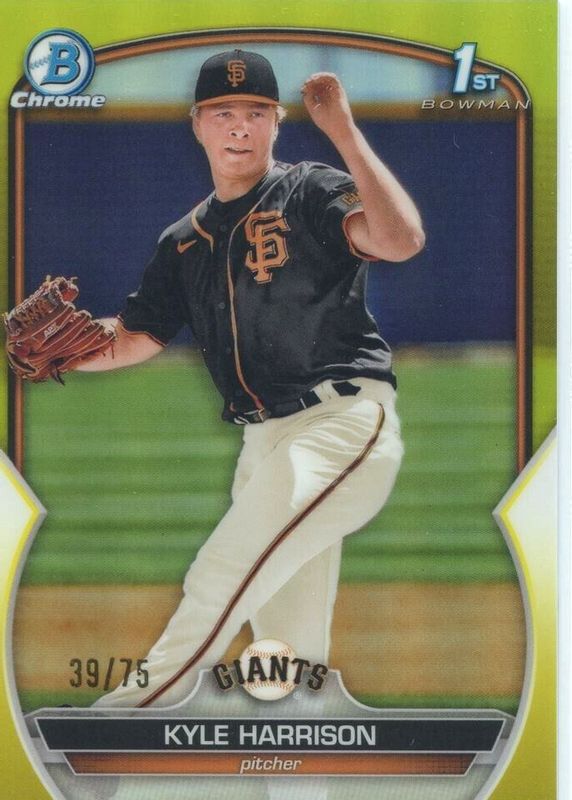 2023 Bowman Chrome Kyle Harrison 1st PROSPECT YELLOW REFRACTOR /75 BCP-93