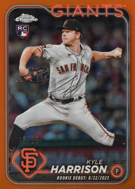 This card is 1 of 45 Kyle Harrison's card variations in the 2024 Topps Chrome Update set being tracked by Sports Card Investor, including Rookie Debut, Rookie Debut - Negative Refractor, Rookie Debut - Prism Refractor, Rookie Debut - Refractor, and Rookie Debut - X-Fractor.