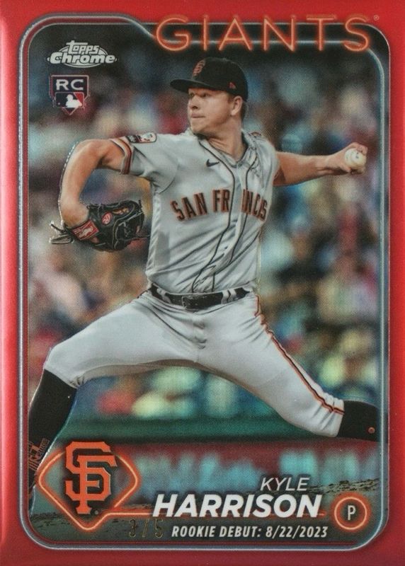 This card is 1 of 45 Kyle Harrison's card variations in the 2024 Topps Chrome Update set being tracked by Sports Card Investor, including Rookie Debut, Rookie Debut - Negative Refractor, Rookie Debut - Prism Refractor, Rookie Debut - Refractor, and Rookie Debut - X-Fractor.