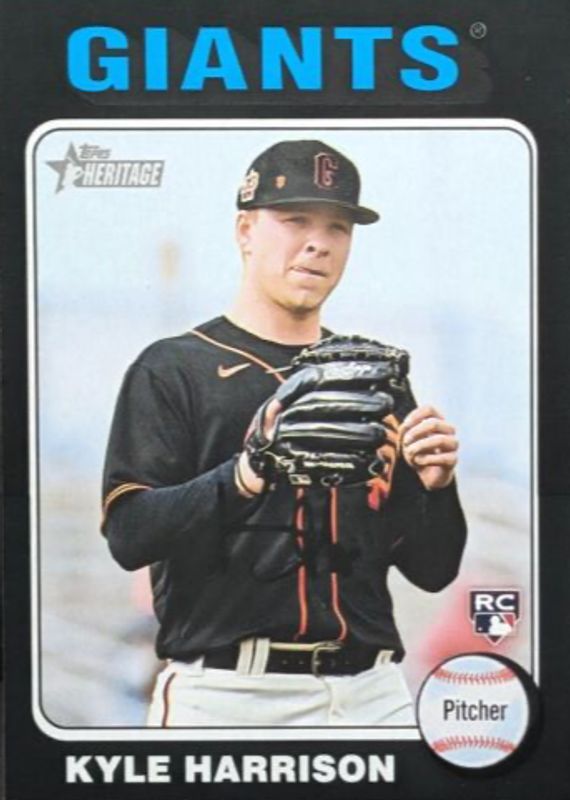 This card is 1 of 8 Kyle Harrison's card variations in the 2024 Topps Heritage set being tracked by Sports Card Investor, including Base, Black & White Image Variation, Flip Stock, Red Border, and White Border.
