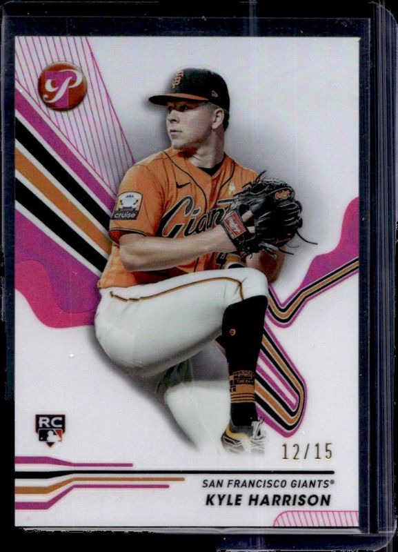 The Kyle Harrison 2024 Topps Pristine #168 Pink Refractor /15 Rookie card is 1 of 18 Kyle Harrison's card variations in the 2024 Topps Pristine set being tracked by Sports Card Investor, including Base, Pristine Refractor, Refractor, Green Refractor /150, and Pristine Purple Refractor /99.