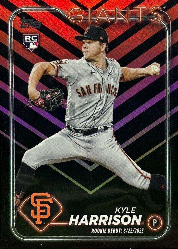 This card is 1 of 35 Kyle Harrison's card variations in the 2024 Topps Update set being tracked by Sports Card Investor, including Rookie Debut, Rookie Debut - Aqua, Rookie Debut - Ghost Foil, Rookie Debut - Gold Rainbow Foil, and Rookie Debut - Jack O' Lantern Foil.