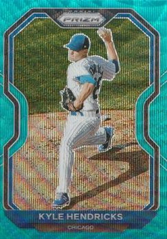 The Kyle Hendricks 2021 Prizm #97 Teal Wave card is 1 of 47 Kyle Hendricks' card variations in the 2021 Prizm set being tracked by Sports Card Investor, including Base, Blue, Blue Velocity, Carolina Blue, and Cosmic Haze.