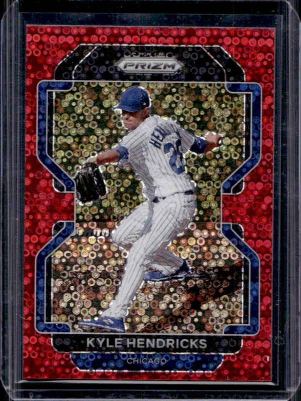 The Kyle Hendricks 2022 Prizm #177 Red Donut Circles /99 card is 1 of 43 Kyle Hendricks' card variations in the 2022 Prizm set being tracked by Sports Card Investor, including Base, Blue, Blue Velocity, Carolina Blue, and Cosmic Haze.