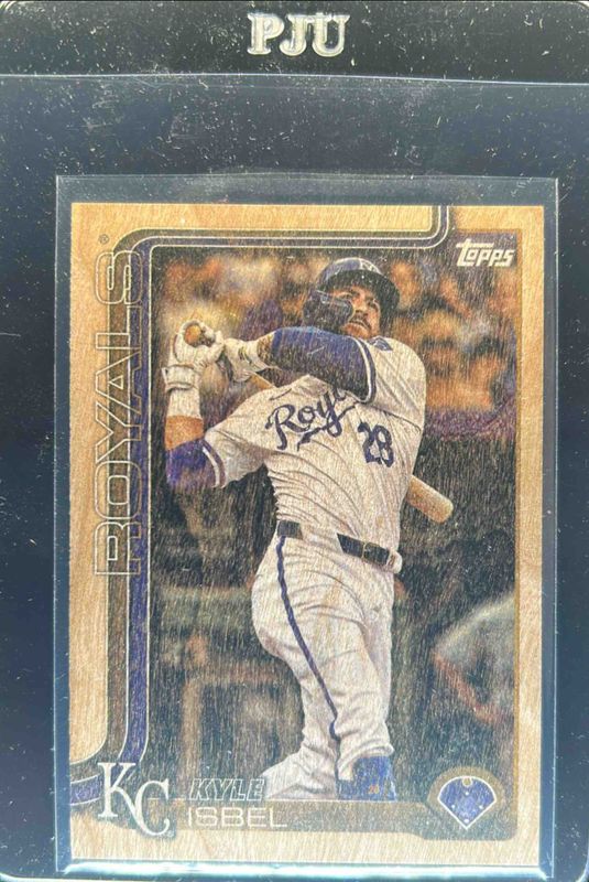 The Kyle Isbel 2025 Topps #470 Wood /25 card is 1 of 56 Kyle Isbel's card variations in the 2025 Topps set being tracked by Sports Card Investor, including Base, Aqua Holo Foil, Diamante Foil, Holo Foil, and Pink Diamante Foil.