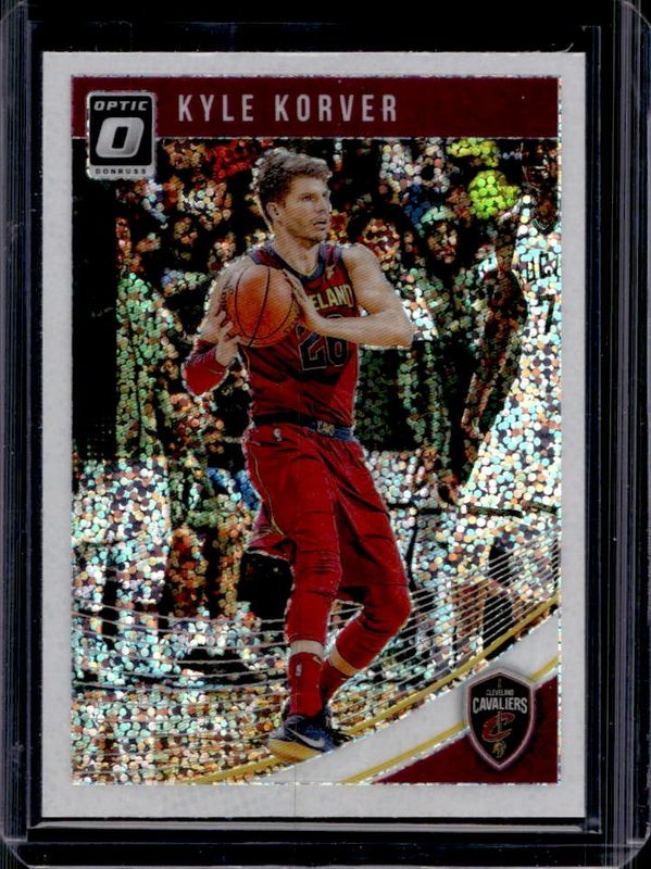 The Kyle Korver 2018 Optic #128 White Sparkle /(SSP) card is 1 of 27 Kyle Korver's card variations in the 2018 Optic set being tracked by Sports Card Investor, including Blue Velocity, Fast Break, Holo, Purple, and Premium Box Set /249.