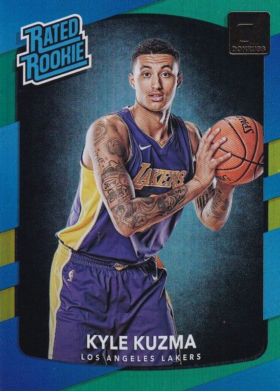 The Kyle Kuzma 2017 Donruss #174 Green Flood Rookie card in Raw condition has not changed in price in the last 30 days and was last sold for $18.00 .