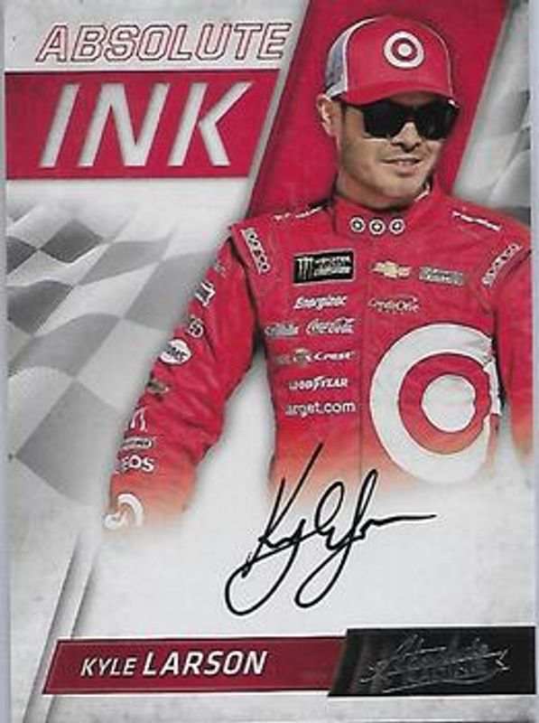 The Kyle Larson 2017 Absolute NASCAR #AI-KL Absolute Ink card is 1 of 39 Kyle Larson's card variations in the 2017 Absolute NASCAR set being tracked by Sports Card Investor, including Base, Spectrum Silver /299, Spectrum Blue /199, Spectrum Red /99, and Spectrum Gold /25.