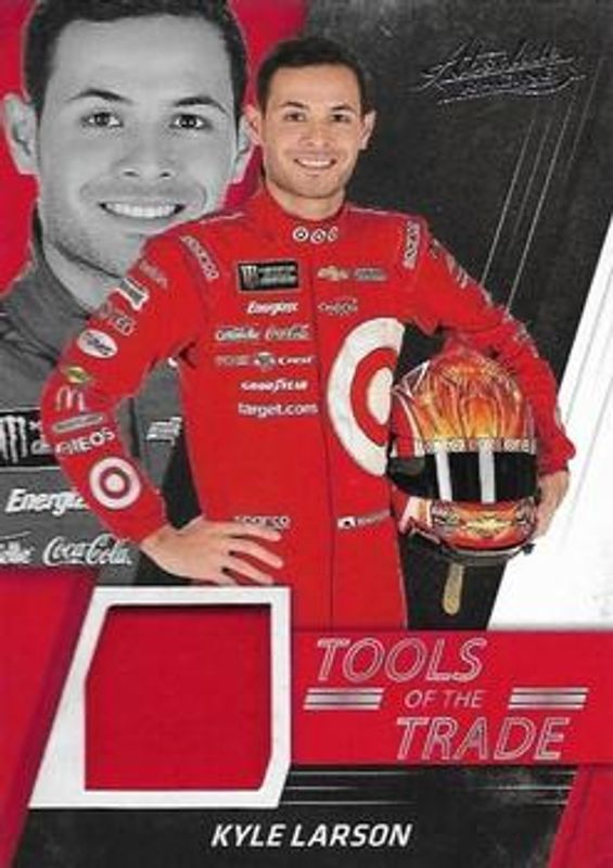 The Kyle Larson 2017 Absolute NASCAR #TT-KL Tools of the Trade card is 1 of 39 Kyle Larson's card variations in the 2017 Absolute NASCAR set being tracked by Sports Card Investor, including Base, Spectrum Silver /299, Spectrum Blue /199, Spectrum Red /99, and Spectrum Gold /25.